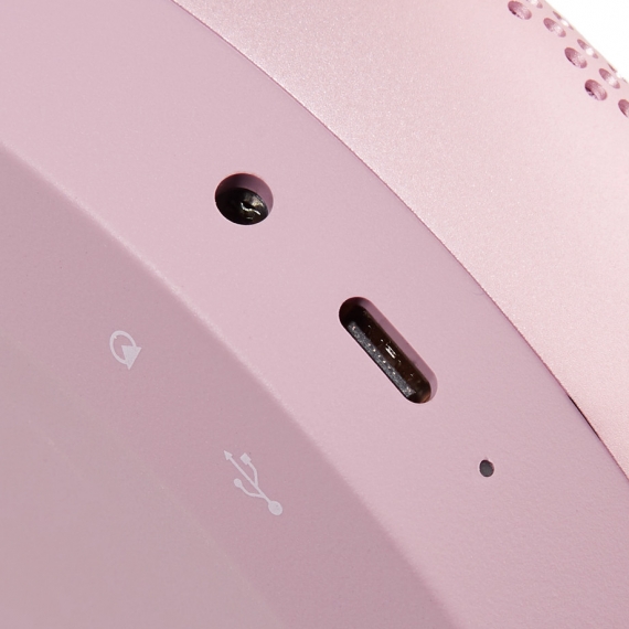 Cầm ngang thì loa được chia làm 2 phần rõ rệt, ở trên phần nhựa polymer / cao su của loa có rất nhiều nút bấm cũng như cổng kết nối. Ở trung tâm chúng ta có cổng USB-C và lỗ cắm 3.5mm.