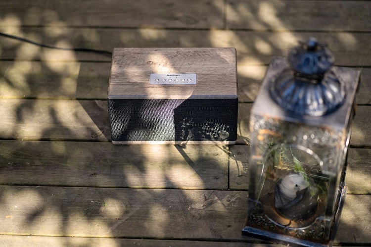 BT5 có ba lớp hoàn thiện, mà Audio Pro gọi là gỗ trôi (nâu nhạt), óc chó (sở thích của chúng tôi) và đen, và cả ba đều có lưới vải màu xám.