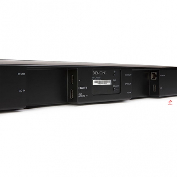 Phía sau loa thanh có đầy đủ các ngõ kết nối thông dụng hiện nay. Ngõ vào HDMI cho nguồn phim 4K Dolby Vision và HDR10 tiêu chuẩn HDCP 2.2. Ngõ ra HDMI (ARC) tiện dụng truyền luôn âm thanh từ TV xuống. Ngõ vào Analog jack 3.5mm, ngõ vào Optical và Coaxial cho tín hiệu Digital. Cổng cắm dây mạng LAN kết nối Internet. Đặc biệt, Denon DHT-S516H có cổng USB dùng cắm và phát nhạc Lossless Hi-Res Audio từ ổ cứng rất hay cho các tín đồ nhạc số dùng HEOS App điều khiển.