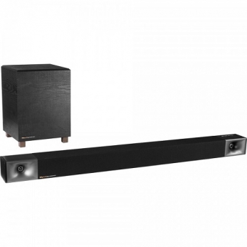 Phần loa thanh được trang bị tổng cộng 4 củ loa con, gồm 2 loa Mid màng fiber composite hình Oval đường kính 7.6cm và 2 Treble dome mềm kích thước 2.54cm kết cấu Linear Travel Suspension họng kèn Tractrix®Horn.